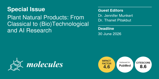 My colleague and I are guest-editing a special issue on plant natural products research from classical to biotechnology and AI at Molecules MDPI. We welcome you to share and publish your valuable work with us.